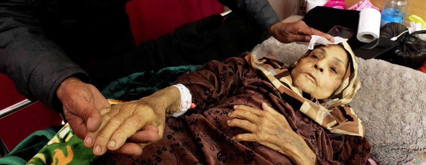 "Ha estado sufriendo de cáncer durante dos años", explica Raed. "Esperó todo este tiempo a que se abriera el cruce para poder ser tratado fuera. Su dolor ha aumentado, como puedes ver".