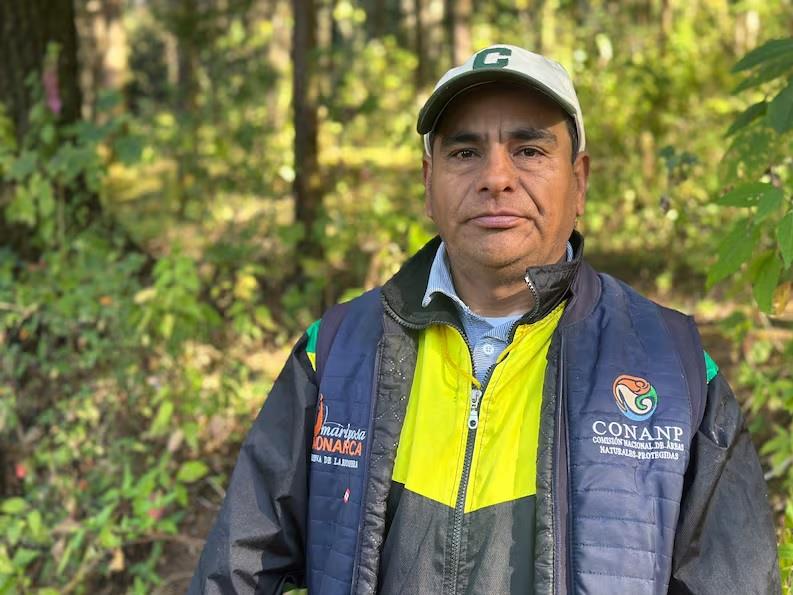 Horacio Cruz Guzmán, miembro del ejido de El Rosario, forma parte de un grupo comunitario que patrulla el santuario de mariposas para protegerlo de la tala.